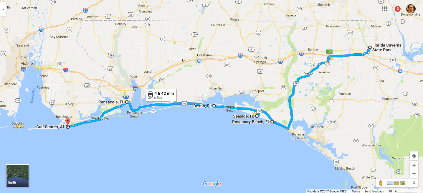 From Florida Caverns State Park, we jumped on scenic Route 30A to see what the Gulf Coast looks like right before spring break unleashes drunken hell upon it.