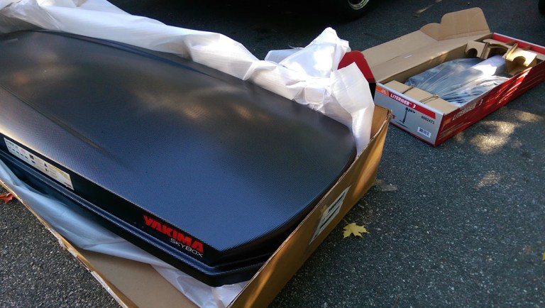 Because Mitch likes things to match, we also got our rooftop cargo box from Yakima. And again… this stuff is expensive. The rack and box are probably twice the price you’d imagine these things to be when you see them on other cars, and frankly, unless you go with a super-cheap knockoff brand, whatever solution you go for is going to cost half your bodily appendages.