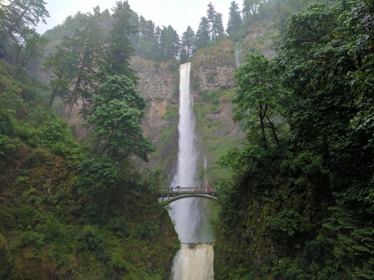 Again, we’ve done this drive and this waterfall alley several times already, so hopefully the lack of photo evidence doesn’t undersell you on how wondrous this area is. The uber-popular Multnomah Falls is a big tourist draw, and makes some kind of asterisky claim about being the tallest two-tiered waterfall in the U.S. or something. Looking a bit muddier than usual today, big fella!