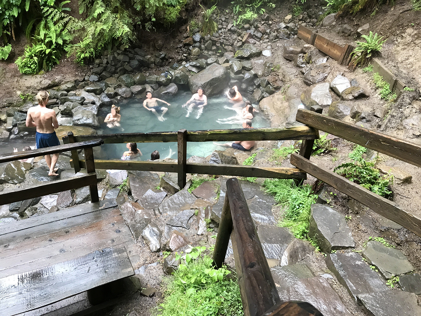 It’s a clothing-optional, five-pool cascade of pools ranging from about 105° to high 90s as you descend them. Very much natural, though the individual pool boundaries were formed with nearby rocks to make it a more people-friendly venture. Given the nudity present (of both adults and babies), we didn’t want to ruin the vibe by snapping a good photo. So we just half-ruined it with a half-good photo. You’ll have to head there yourself for the whole picture.