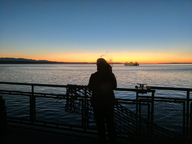 Ah, here’s the reality check we’ve been overdue for! A total whiff on bridges crossing the Puget Sound, leading us to a ferry in Edmonds that had commuter cars lined up for hours. Touché, Seattle. We holed up in a local cafe until sunset, when the traffic lightened up and the sky dimmed down.