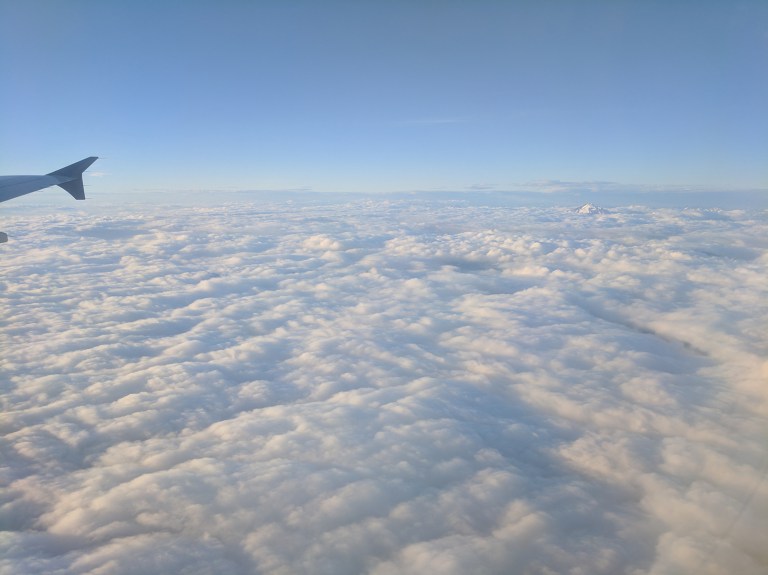 Meanwhile, Mitch’s flight back offered some much more well-composed photo ops, including this magnificent mountain poking out above the clouds (top right.) Not sure which one that is… looks like Glacier Peak? Anyone here a regular on flights to Seattle? There’s no prize for having the right answer, but the smugness you’ll feel from correcting us is its own kind of prize.