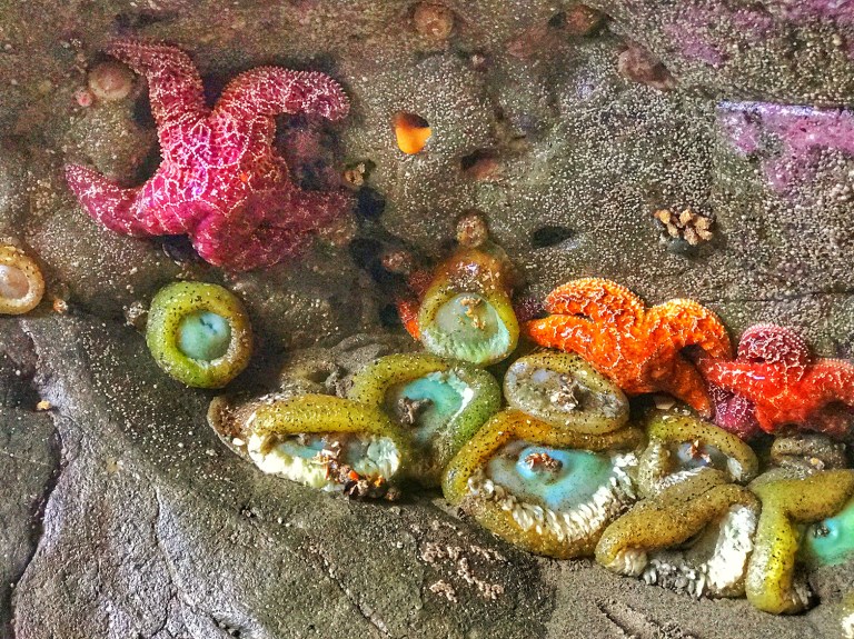 Gear up for a walk through some frigid surf, and make your way out to the sea stacks. Look down. Start poking stuff. Repeat.