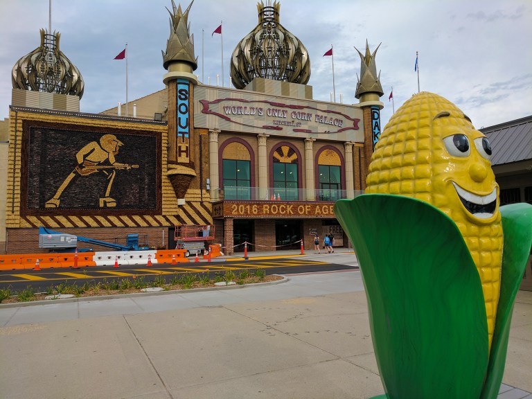 Between this historic site and the state’s eastern terminus of Sioux Falls, there ain’t much to lay eyes on… oh, except a palace made of corn. The Corn Palace.