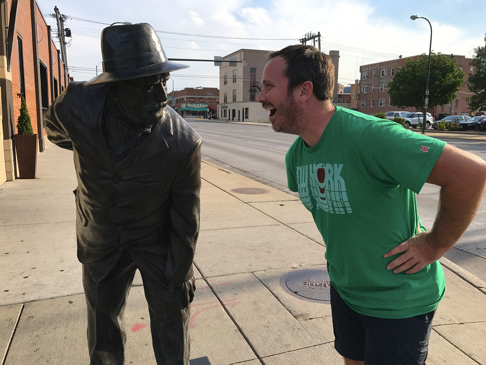 Carrying the presidential theme, you’ll find them embronzed on many a downtown street corner. This one looks like Theo Roozy, which would mark like the ninth time we’ve mentioned him on our blog… but judging by Mitch’s level of interest in composing this photo op, it must be a flattering representation of Taft.