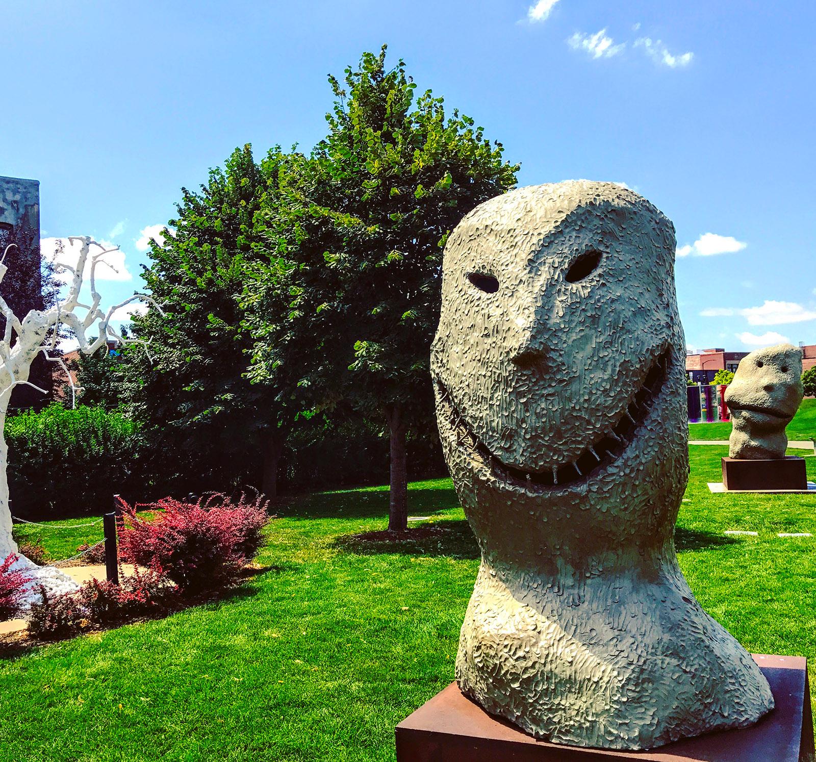 Pappajohn Sculpture Park is one of the city’s activity hubs, and though it’s small, it doesn’t shy away from creeping the kids out with Tim Burton-esque characters.
