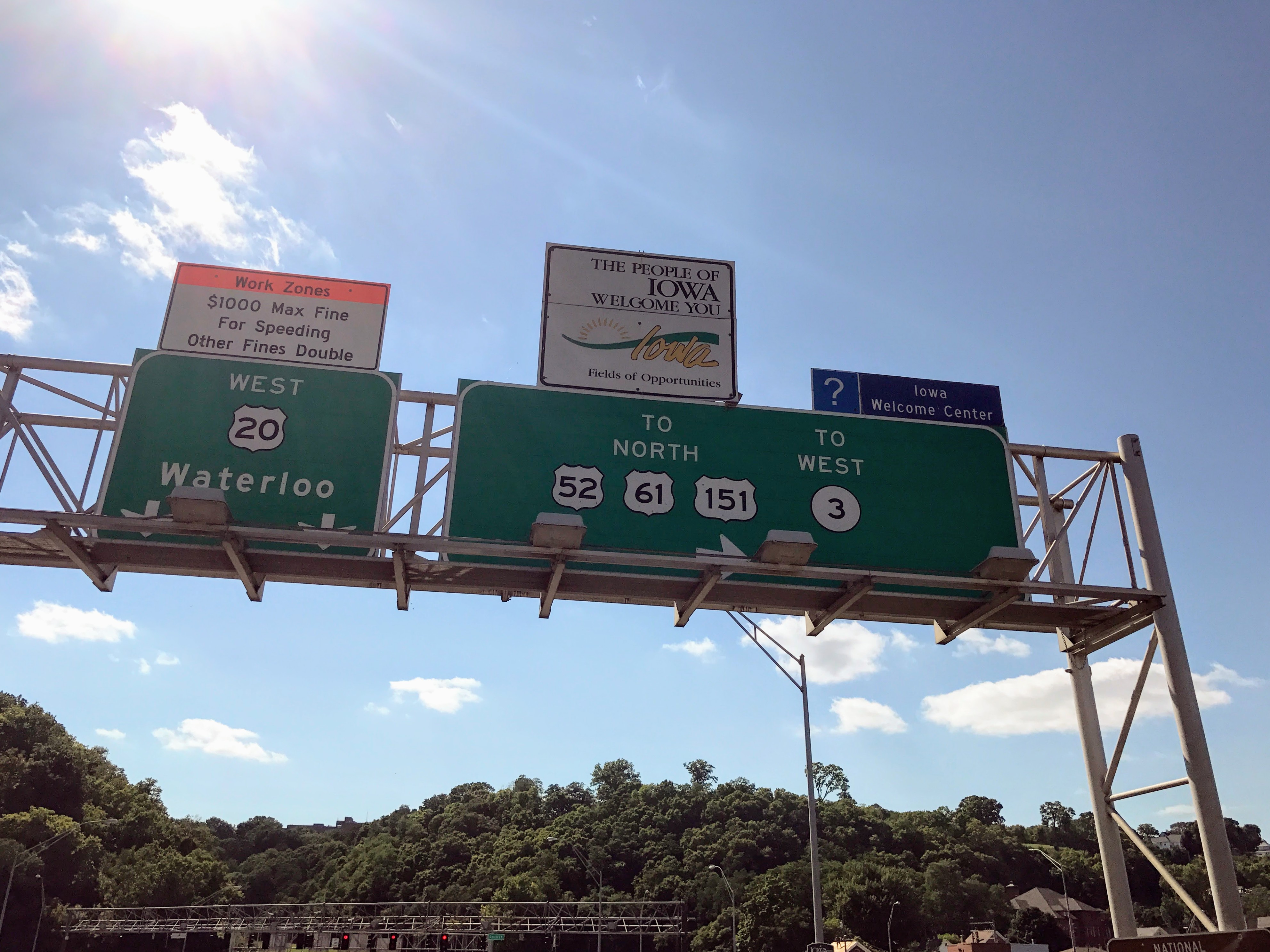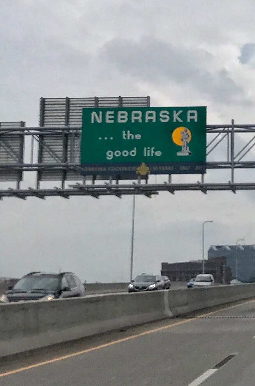 In a literal sign of things to come, Nebraska’s welcome sign was in the middle of the highway rather than the side, so we couldn’t do the things people usually do with those signs like stop next to them or take a decent photo of them.