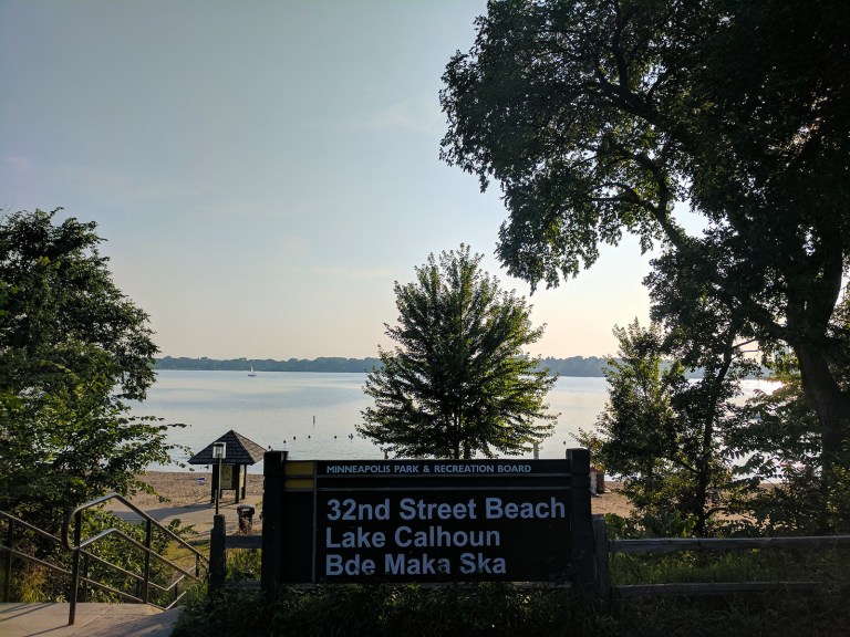 Lake Calhoun. This is a great little spot to take a dip, as it’s just a few blocks off one of the hippest strips in the city — the Uptown/Lowery Hill area. The water felt great, and our safety was assured by a lifeguard on duty who was spending most of his time deflating the illegal blow-up water wings kids were using. WHERE DO YOU DRAW THE LINE?!
