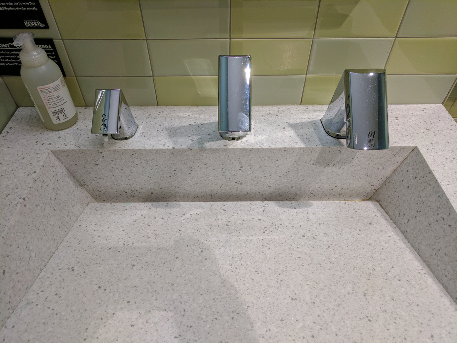 One last thing about Minneapolis: we don’t remember what establishment this was, but behold: the best-designed public bathroom fixtures in America. Soap on the left, water in the middle, hand dryer on the right. Immediately obvious as to how you should use them all. Even some extra soap on the side in case the employees don’t get around to refilling the dispenser. We’ve spent many a restroom trip tapping on things that should be push, or pushing on things that should be wave, or waving at things that should be pull… enough! Design it right!