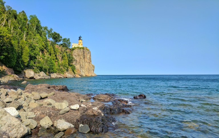Once the weather broke, we headed up the west side of the lake to Two Harbors, Minnesota, where we checked out Split Rock Lighthouse from both above and below: