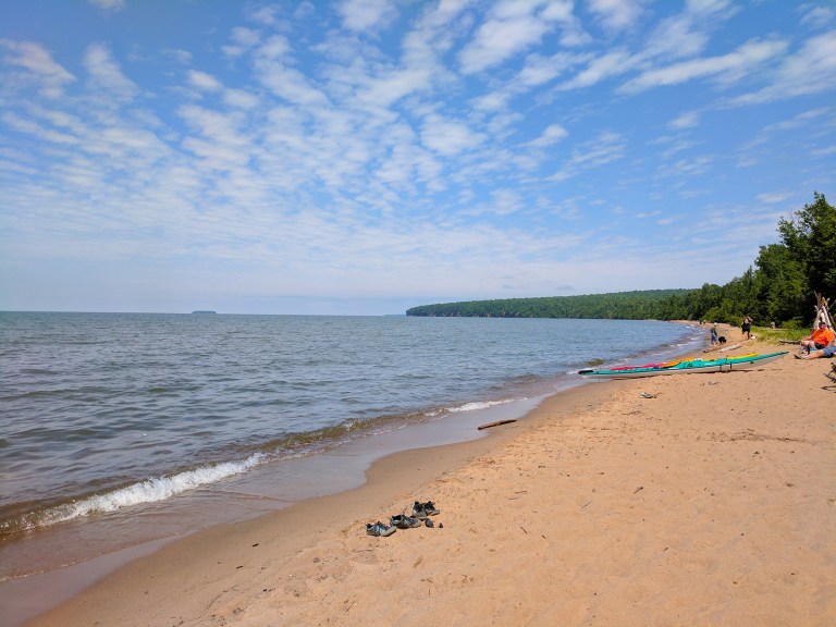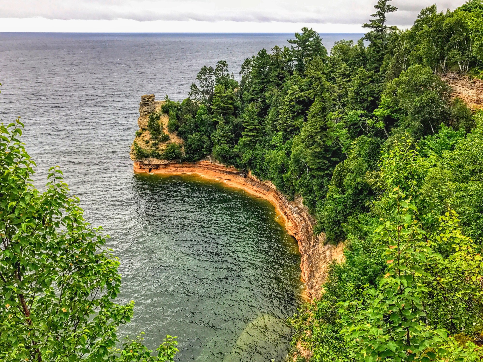 Because we’ve become horrible travelers at this point, what you see above is all you get of both Wisconsin’s Apostle Islands and Michigan’s Pictured Rocks National Lakeshores. They’re very similar from afar — cavernous, colorful rock formations rubbing elbows with Lake Superior for who knows how long.