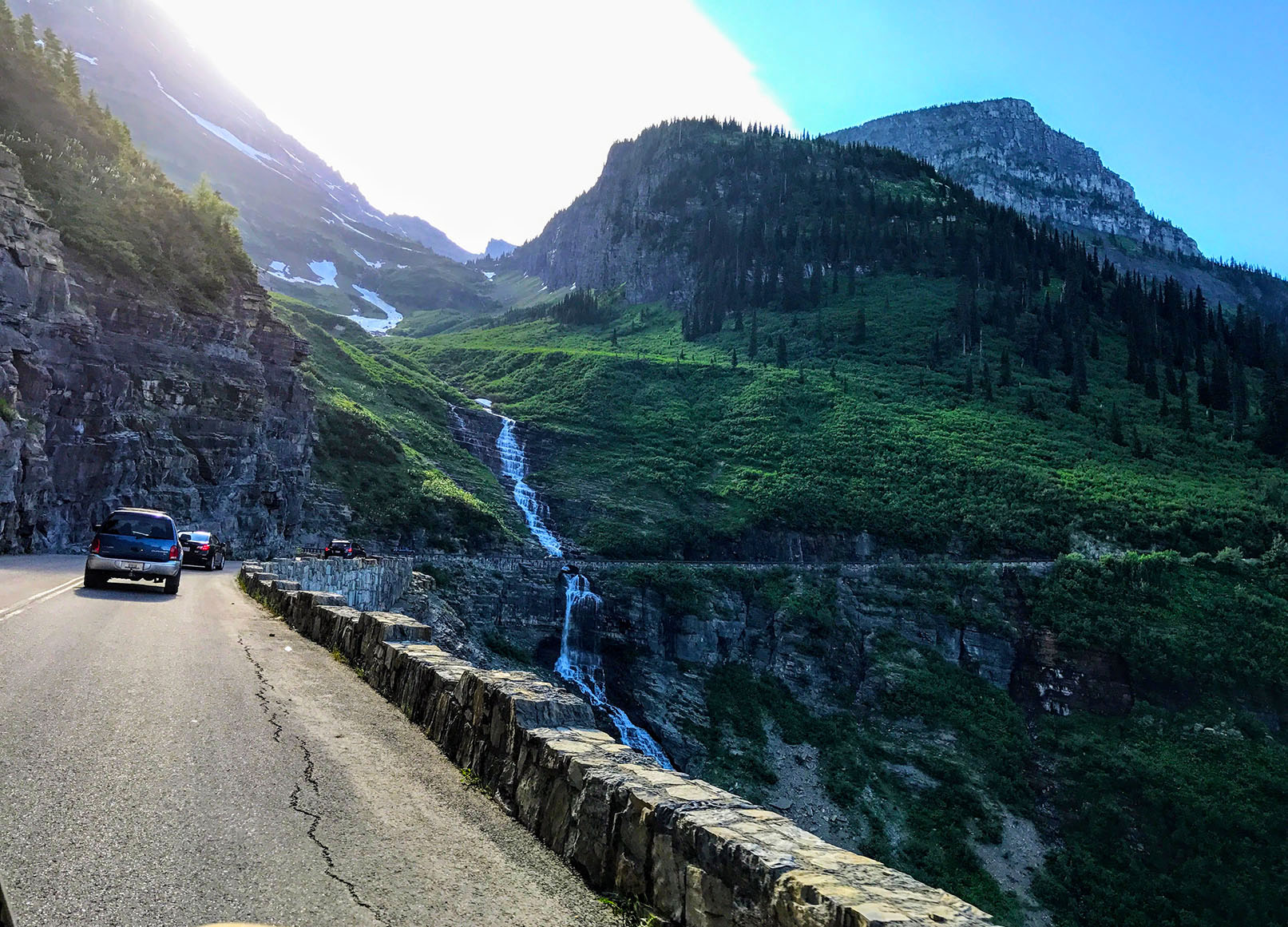 The road in question is actually three states over, near the Canadian border in Montana. Its name? Going-To-The-Sun Road.