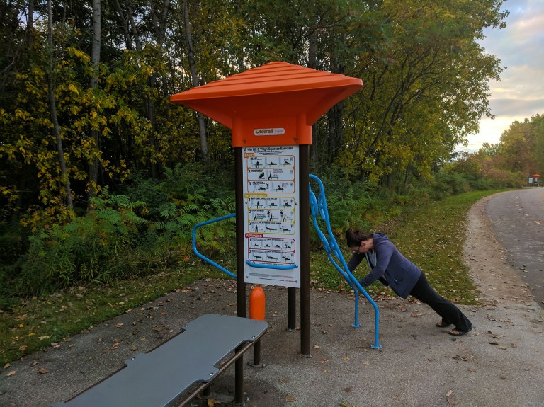 Back in town, Hailey continued her hot streak of finding obscurely placed outdoor exercise equipment.