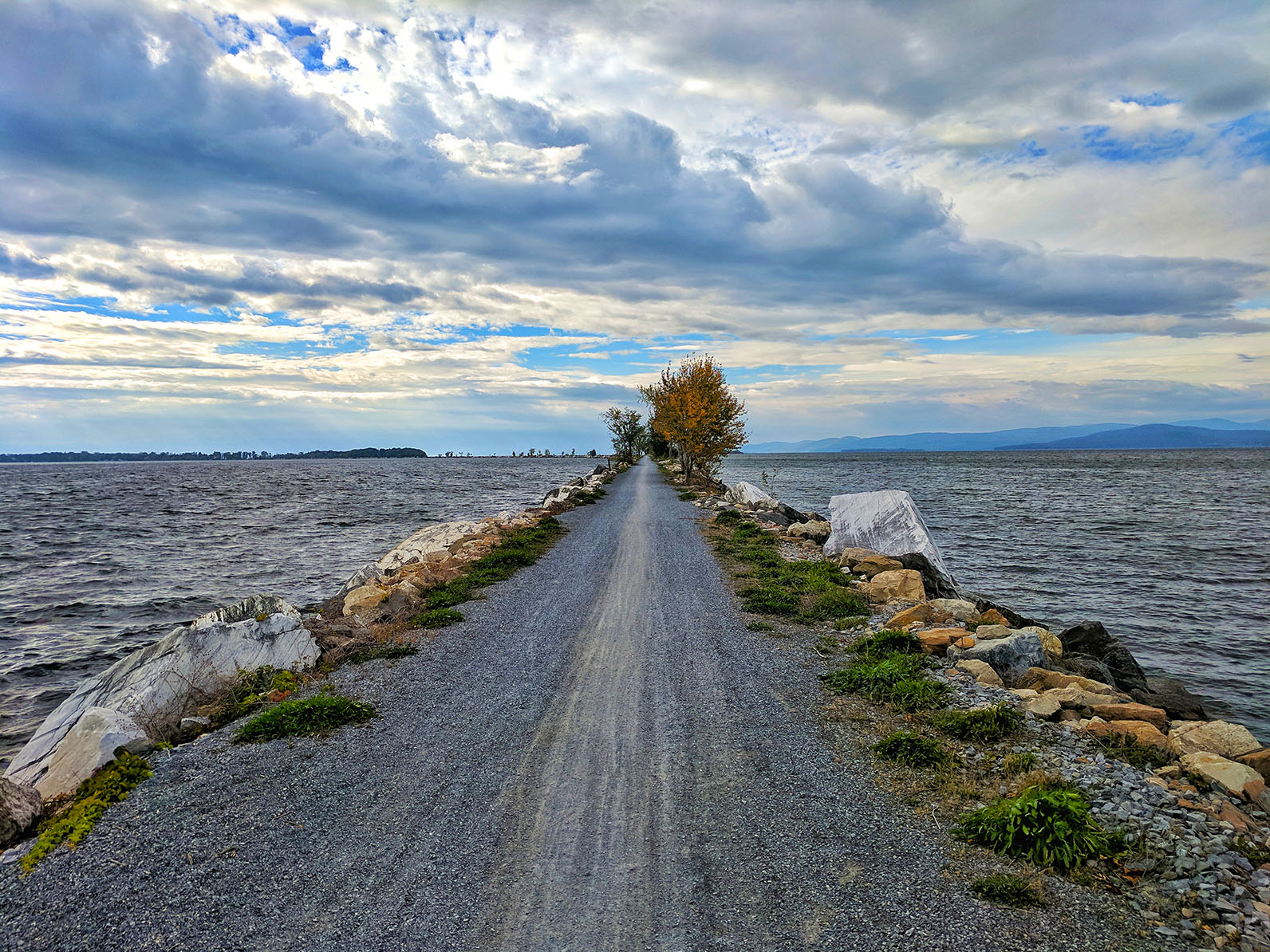 The natural border here is Lake Champlain, and some genius decided there should be a hiking path built to take you out to the center of said lake where an island sits. Behold, the skinniest park you’ve ever seen: Causeway Park in Burlington, Vermont: