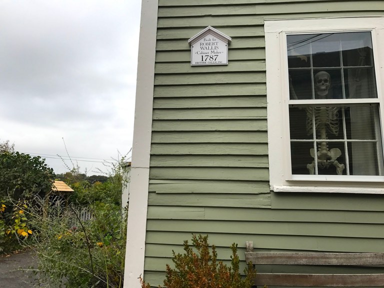 Like many early New England ports, Salem has history to burn, witches notwithstanding. Quite a few of the homes display placards revealing their ancient-by-America’s-standards build dates, such as thi– oh, apologies for the skeleton’s indecent exposure.